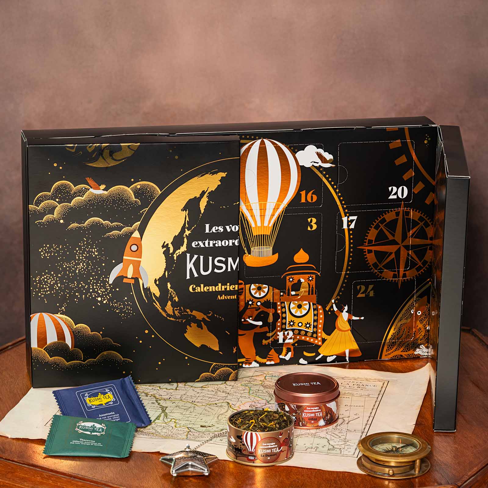 · Kashmir Tchai – Svart te* (64 %), kryddor* (kardemumma*, kanel*, ingefära*, anis*, lagerblad*, kryddnejlika*, eukalyptus*) (35 %), naturliga kryddsmaker.